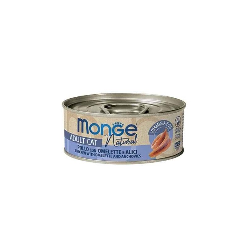 Monge Cat Delicate Pezzetti di Pollo con Omelette e Acciughine offre al tuo gatto una prelibatezza irresistibile. Questa lattina da 80 grammi presenta una gustosa combinazione di petto di pollo di alta qualità, omelette delicata e acciughine saporite, preparate con attenzione per soddisfare anche i palati più esigenti.