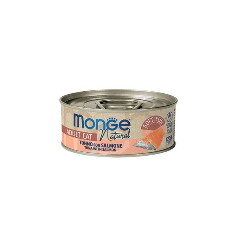 Monge Cat Jelly Pezzetti di Tonno con Salmone è un alimento complementare pensato per i gatti adulti che apprezzano una varietà di sapori prelibati. Questa confezione da 80 grammi offre una deliziosa combinazione di tonno e salmone, arricchita con la qualità tipica dei prodotti a base di pesce provenienti dalla Thailandia.