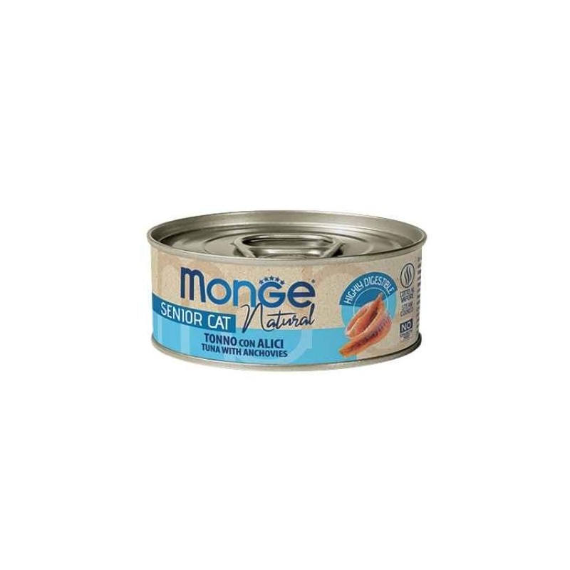 Monge Cat Jelly Senior Filetti di Tonno con Acciughine è un alimento complementare pensato appositamente per i gatti dagli 11 anni in su, offrendo loro una prelibata combinazione di tonno con acciughine prodotta in Thailandia.