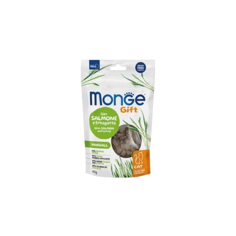 Monge Gift Snack Cat Hairball con Salmone ed Erba Gatta Filled and Crunchy 60g