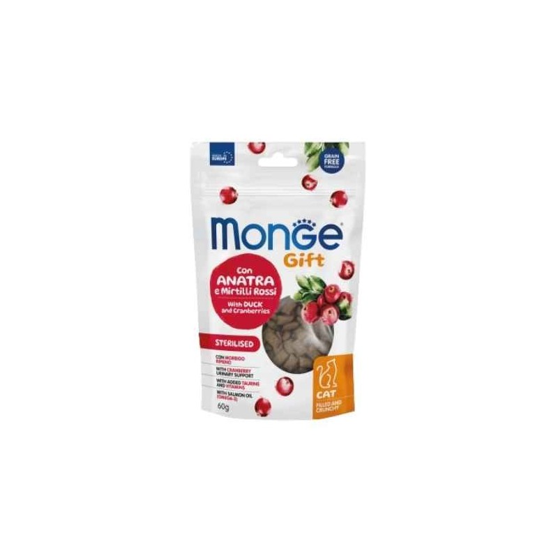 Monge Gift Snack Cat Sterilised Gatto con Anatra e Mirtilli Rossi Filled and Crunchy 60g