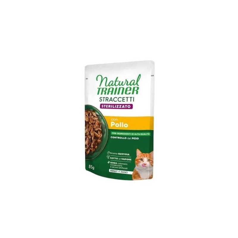 Alimento per gatti adulti sterilizzati: Ideale per gatti adulti sterilizzati, i Natural Trainer Cat Straccetti Sterilizzato Pollo offrono un pasto gustoso e bilanciato.