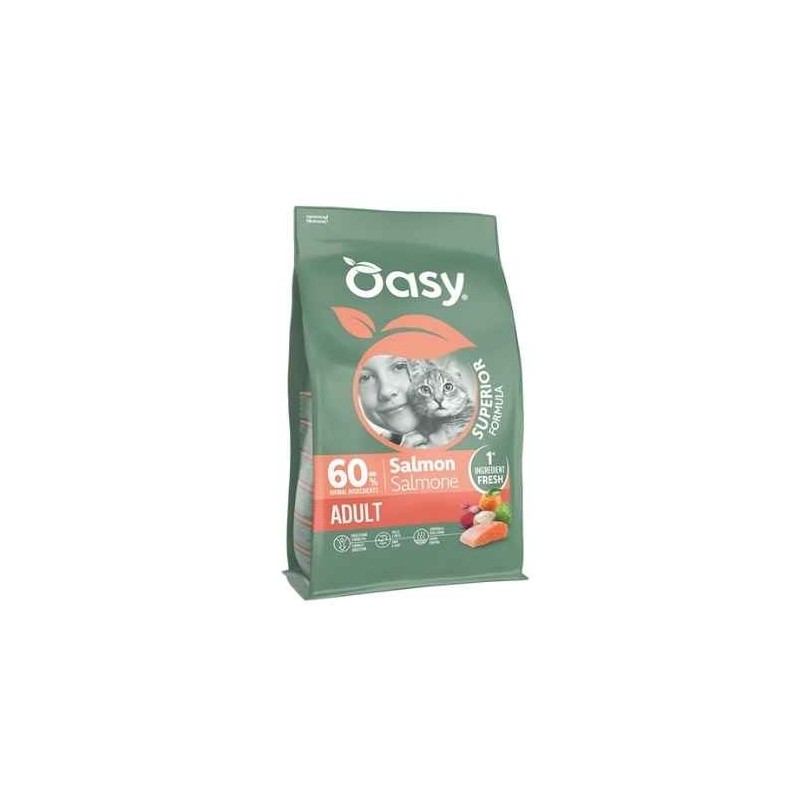 Oasy Cat Superior Formula Adult Salmone è l'alimento ideale per il tuo gatto adulto, pensato per soddisfare le sue esigenze nutrizionali e gustative. Formulato con salmone fresco di alta qualità, questo alimento è progettato per gatti di tutte le razze e taglie, fornendo una dieta equilibrata e ricca di nutrienti essenziali. Se desideri offrire al tuo amico felino un pasto che migliori la sua salute e il suo benessere, Oasy Cat Superior Formula è la scelta perfetta.